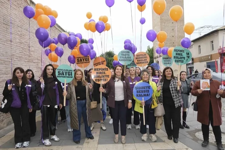 Ayrıca Adana’nın simgesi olan Tarihi Büyük Saat önünde, “Kadına Yönelik Şiddete Karşı Ses Çıkarıyoruz” sloganıyla anlamlı bir etkinlik gerçekleştirildi. Kadınlar, şiddetsiz bir dünya dileğiyle mor ve turuncu balonlarını gökyüzüne bıraktı. Göğe yükselen her balon, şiddetin son bulması yönündeki kararlılığı, dayanışmayı ve umudu simgeledi. Kadına yönelik şiddetin kabul edilemez olduğu bir kez daha güçlü bir şekilde haykırıldı.