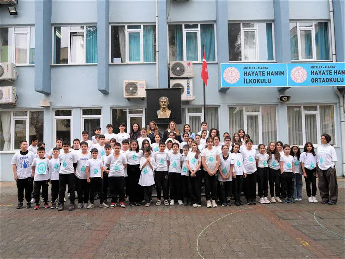 25 Mart Çarşamba günü, Alanya Hayate Hanım Okulu öğrencileri kendi tasarladıkları tişörtlerle bir eğitim programına katıldı. İklim Değişikliği ve Sıfır Atık Müdürlüğü uzmanları tarafından verilen eğitimde; artan nüfus ve iklim değişikliği nedeniyle su kaynaklarının verimli yönetimi, su tasarrufu, temizliği ve sürdürülebilirlik bilinci ile suya erişimin bir insan hakkı olduğu konuları anlatıldı. Eğitimin ardından okul bahçesinde "Su Damlası Temsili" çalışması yapıldı.