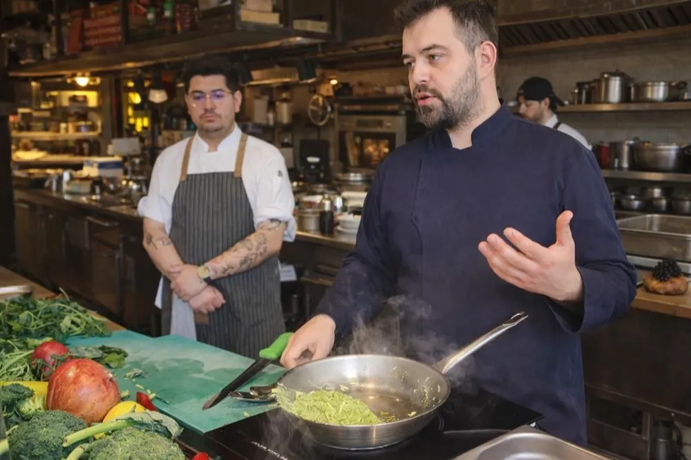 ANTALYA (İGFA) - Alanya Belediyesi İklim Değişikliği ve Sıfır Atık Müdürlüğü öncülüğünde hayata geçirilen proje, uluslararası Culinary Heritage (Mutfak Mirası) sertifikasyon sisteminin üyesi olan Mercado Restaurant iş birliğinde gerçekleştirildi. Atıksız mutfak kültürünün uygulamalı olarak anlatıldığı atölyede; genellikle çöpe giden sebze kabukları, saplar, bayat ekmekler ve kahve telveleri usta ellerde yeniden hayat buldu. Doğru tekniklerle gıda atıklarının nasıl eşsiz lezzetlere dönüştürülebileceğinin gösterildiği eğitimde; fırınlanmış sebze kabukları ve saplarından karamelize sebze çorbası, atık yeşillikler ile brokoli saplarından yeşil pirinç, bayat ekmekten kroket ve çekirdek kahve telvesinden kurabiye yapıldı.