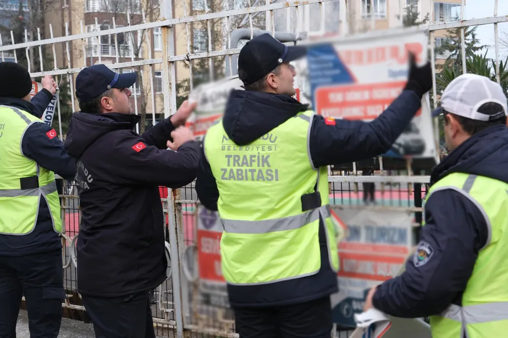 Denetimler kapsamında, özellikle ana arterler ve yoğun yaya güzergâhlarında mevzuata aykırı şekilde asıldığı tespit edilen izinsiz görsel materyaller de ekiplerce sökülerek toplandı. İzinsiz afiş asan kişilere ekipler tarafından uyarı yapıldı.