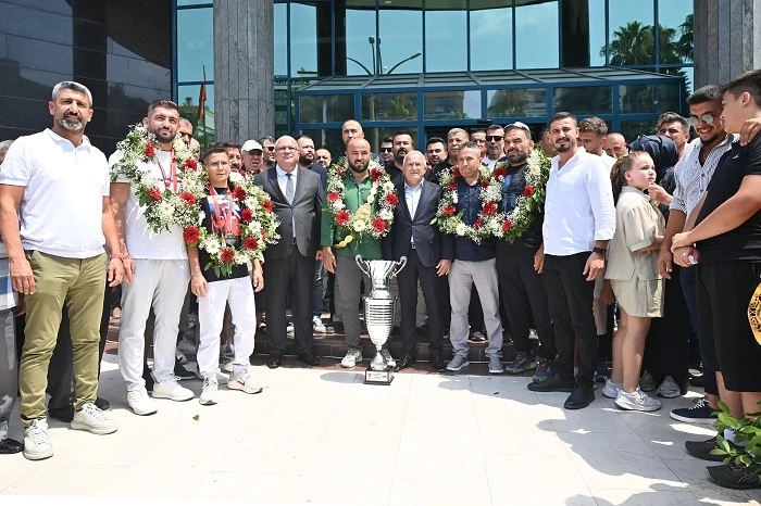 Antalya Kumluca'da 664. Tarihi Kırkpınar Yağlı Güreşleri’nde başarı elde eden pehlivanlarını büyük bir coşkuyla karşıladı.