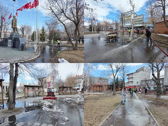 Ardahan Belediyesi ekipleri, kışın ardından park ve bahçelerde hummalı bir temizlik çalışması başlattı. Alanlar tazyikli suyla yıkanarak hijyenik hale getiriliyor.