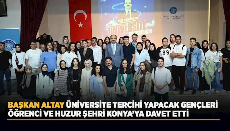 Başkan Altay, gençlerin Konya’da geçireceği zamanların hem eğitimlerine hem de bireysel gelişimlerine büyük katkı sağlayacağını belirterek, “Huzurun, güvenin, tarihin ve yenilikçiliğin bir arada yaşandığı Konya’da, siz gençlerimizi görmekten büyük mutluluk duyarız. Gelin, birlikte öğrenelim, üretelim ve geleceği birlikte inşa edelim. Tercihiniz Konya olsun, kazanan siz olun. Geleceğinize yön vereceğiniz bu önemli tercih döneminde sizleri, huzur ve ilim şehri Konya’mıza davet ediyor, her birinize başarılı bir eğitim hayatı diliyorum” açıklamalarını yaptı.