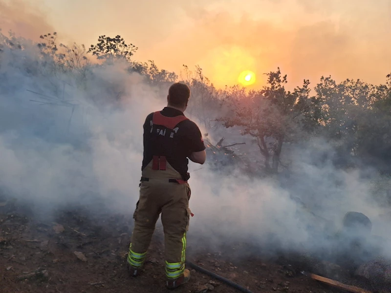 YANGININ EVLERE SIÇRAMASINI ÖNLEYİP KOYUNLARI KURTARDILAR