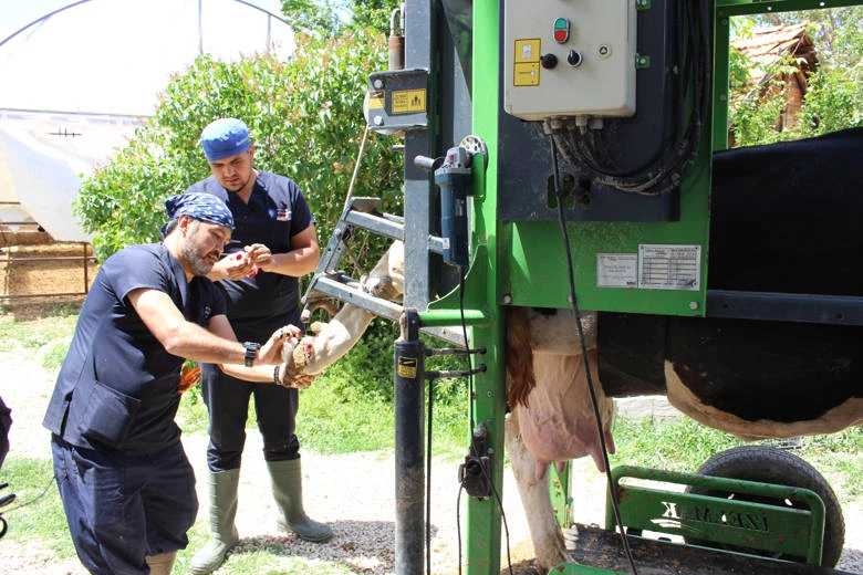 Yerelden Kalkınma Projesi kapsamında tarım ve hayvancılığa önemli destekler sağlayan Antalya Büyükşehir Belediyesi, büyükbaş hayvancılıkla uğraşan besicilerin daha fazla verim elde etmelerini sağlamak amacıyla hayvanları ücretsiz sağlık kontrolünden geçiriyor. Büyükşehir ekipleri, Elmalı’da hayvancılıkla uğraşan, besicilerin büyükbaş hayvanlarının tırnak bakımlarını da yapıyor.