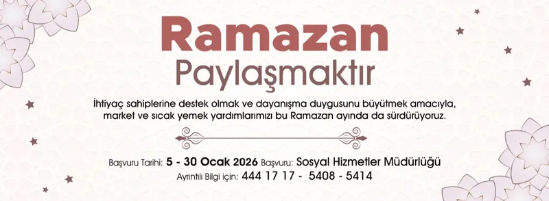 Market ve sıcak yemek desteği almak isteyen vatandaşlar, 5-30 Ocak 2026 tarihleri arasında belediyenin Sosyal Hizmetler Müdürlüğü'ne başvuruda bulunabilir. Ayrıca, 444 17 17 numaralı Çağrı Merkezi'nin 5408 ve 5414 dahili hatlarından detaylı bilgi alınabileceği belirtildi.