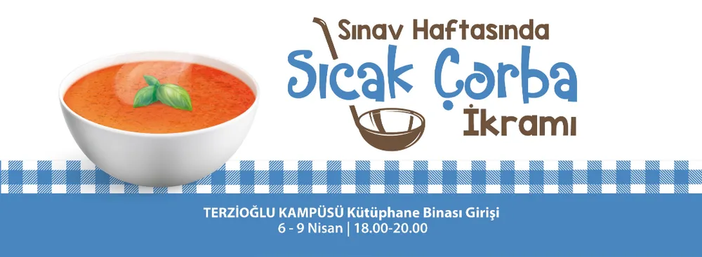 Çanakkale Onsekiz Mart Üniversitesi (ÇOMÜ) öğrencilerinin sınav döneminde moral bulması amacıyla düzenlenen sıcak çorba ikramı, 6-9 Nisan 2026 tarihleri arasında gerçekleştirilecek. Etkinlik, her gün 18.00 ile 20.00 saatleri arasında Terzioğlu Kampüsü'ndeki Kütüphane Binası girişinde yapılacak.