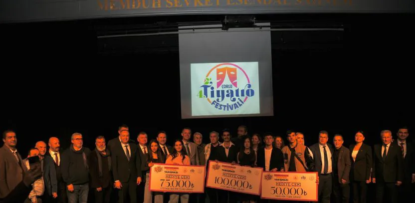 Çorlu Belediyesi tarafından ilk kez düzenlenen Okullar Arası Tiyatro Yarışması'nın kazananları belli oldu. Yarışmada dereceye giren okullar, düzenlenen törenle ödüllerini aldı. Çorlu Belediye Başkanı Ahmet Sarıkurt, gençlerin sanat yolculuğuna destek mesajı verdi.