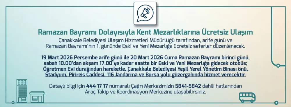 Çanakkale'de Ramazan Bayramı'nda Mezarlıklara Ücretsiz Ulaşım Hizmeti