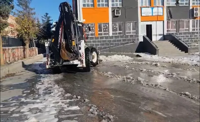 Şanlıurfa'nın Eyyübiye ilçesinde, bir haftalık kar tatilinin ardından okulların açılacağı pazartesi günü öncesinde belediye ekipleri, okul avluları ve çevre yollarındaki kar ve buz temizliğini yoğunlaştırdı.