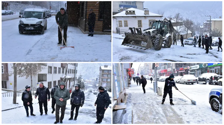 Gümüşhane Belediyesi, kar yağışının ardından başlatılan temizlik ve ulaşım çalışmalarında ekiplerle birlikte sahada yer aldı.
