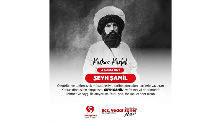 Gümüşhane Belediye Başkanı, Kafkas direnişinin önemli ismi Şeyh Şamil'in vefat yıl dönümünde kendisini rahmetle yad etti.