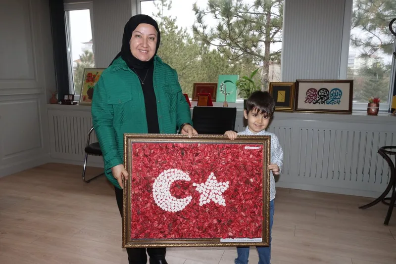 Ziyarette minik öğrenci Eymen Mermer, milli birlik ve beraberliğin simgesi olan bayrağı, çocukların duygu dünyasından yansıyan eserlerle buluşturmak amacıyla düzenlenen "Bayrak Sergisi"nde sergilenen bir bayrağı Başkan Seyhan Kılınçarslan'a hediye etti.