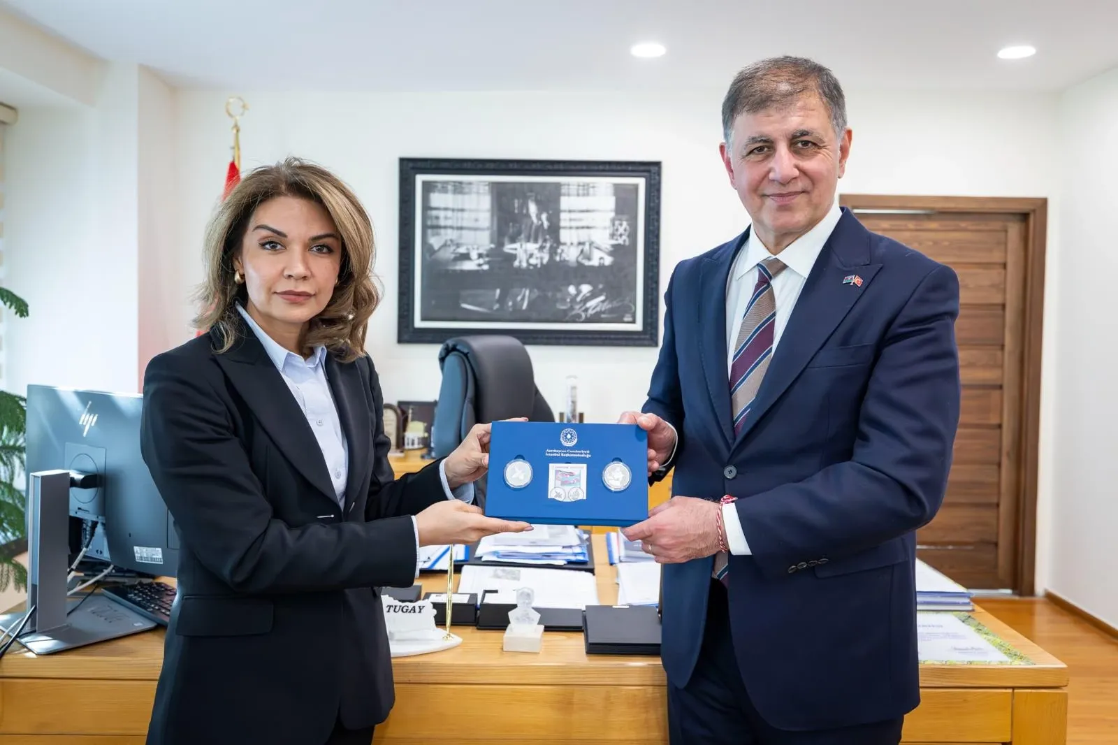 İzmir Büyükşehir Belediye Başkanı Dr. Cemil Tugay, Azerbaycan’ın İstanbul Başkonsolosu Narmina Mustafayeva ve beraberindeki heyeti makamında ağırladı. Görüşmede İzmir ile Bakü’nün kardeş şehir oluşunun 40. yılının kutlanması gündeme gelirken, karşılıklı ilişkilerin artırılması kararlaştırıldı.
