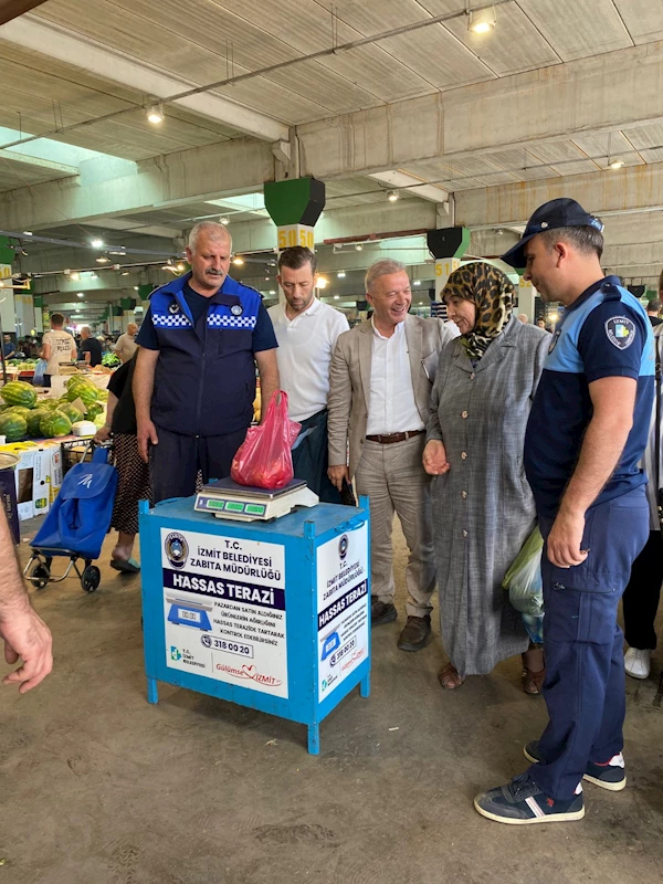 İzmit Belediyesi Zabıta Müdürlüğünün semt pazarlarında uyguladığı hassas terazi uygulaması, vatandaşların güvenli ve adil alışveriş yapmasını sağlayarak büyük takdir topluyor