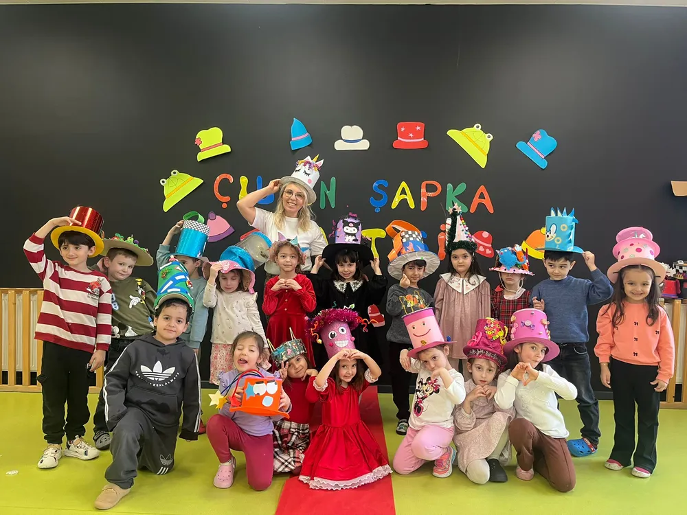 Renkli kartonlardan, tüllerden, düğmelerden ve geri dönüşüm malzemelerinden hazırlanan şapkalar adeta görsel bir şölene dönüştü. Kimi çiçek bahçesini başına taşıdı, kimi de masal kahramanına dönüştü. Şarkılar eşliğinde sınıflarda neşeli anlar yaşanırken, çocuklar arkadaşlarıyla birlikte oyunlar oynayıp doyasıya eğlendi. Gün boyunca kahkahalar koridorlardan taşarken çocuklar üretmenin, paylaşmanın ve birlikte başarmanın mutluluğunu da deneyimledi.