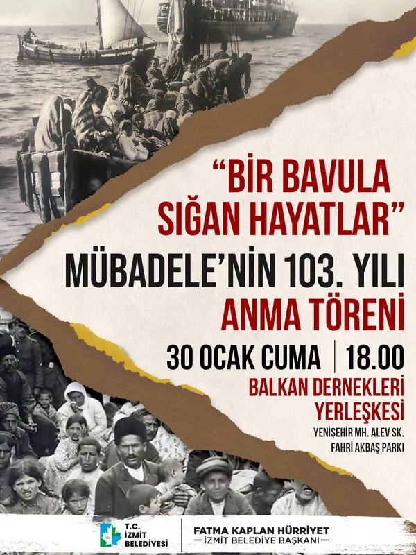 İzmit Belediyesi, 30 Ocak 1923'te imzalanan Türk-Yunan Nüfus Mübadelesi'nin 103. yılı dolayısıyla anma programı düzenleyecek. Etkinlik, Balkan Dernekleri Yerleşkesi'nde gerçekleştirilecek. Program, toplumsal hafızadaki yerini koruyan mübadelenin izlerini gelecek nesillere aktarmayı amaçlıyor.