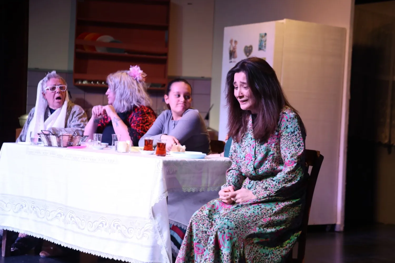 Oyun sırasında kimi zaman tebessüm ettiren, kimi zaman izleyenleri düşündüren anlar yaşanırken, 8 kadının acıklı öykülerini anlatan gösteride zaman zaman izleyicilerin gözyaşlarına hakim olamadığı da görüldü.
