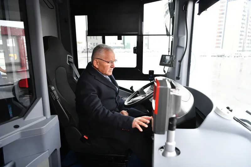 Kayseri Büyükşehir Belediye Başkanı Dr. Memduh Büyükkılıç, belediye bünyesindeki Ulaşım A.Ş.'de incelemelerde bulundu. Büyükkılıç, otobüs filosuna katılan yüzde 100 elektrikli, sessiz ve sıfır emisyonlu yeni otobüs ile elektrikli bisikletleri yerinde inceledi.