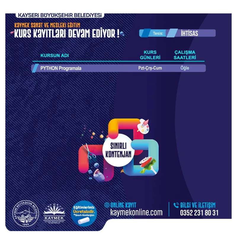 KAYMEK tarafından düzenlenen Python programlama kursu, yazılım geliştirme ve veri analizi alanında kariyer yapmak isteyen gençlere ücretsiz eğitim imkanı sunuyor.