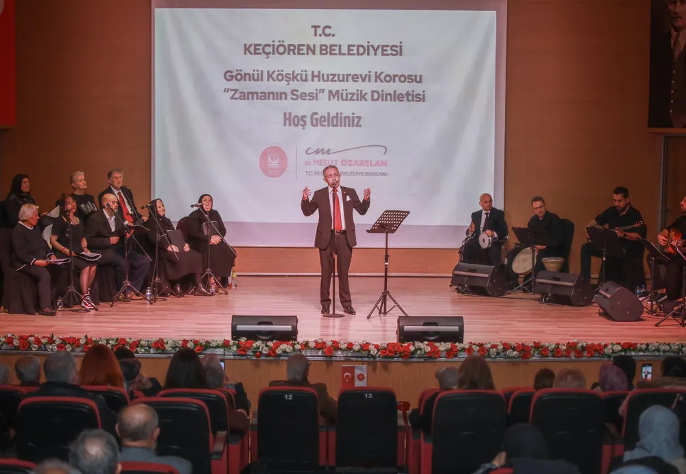 Keçiören Belediyesi Gönül Köşkü Huzurevi sakinlerinden oluşan bir koro, uzun süren çalışmaların ardından 'Zamanın Sesi' adlı müzik dinletisiyle sahne aldı. Yunus Emre Kültür ve Sanat Merkezi'nde gerçekleştirilen etkinlikte, huzurevi sakinleri Türk halk müziğinin sevilen eserlerini seslendirdi.