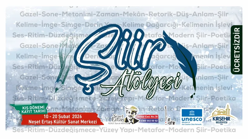 Kırşehir Belediyesi Şiir Atölyesi'nin 2026 Kış Dönemi kayıtları 20 Şubat'a kadar devam ediyor. Başvurular, Neşet Ertaş Kültür Sanat Merkezi Danışma Birimi'ne yapılabiliyor.