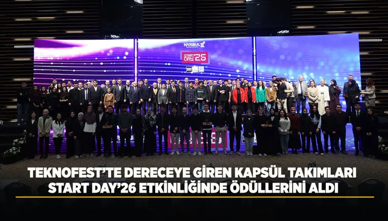 KAPSÜL Teknoloji Platformu'nun düzenlediği Start Day'26'da, TEKNOFEST'te dereceye giren takımlar ödüllerini aldı. Etkinlikte teknoloji projeleri tanıtıldı ve yerel yönetimden üniversiteye geniş bir katılım sağlandı.