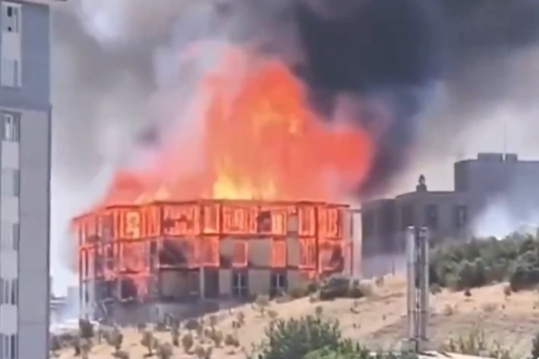 Kahramanmaraş’ta Orman Genel Müdürlüğü lojman inşaatında çıkan yangında alevler tüm binayı sardı.