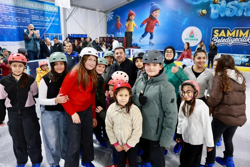 Nevşehir'de kentin sosyal yaşamına yeni bir soluk kazandırmak amacıyla kurulan mobil buz pateni pisti, düzenlenen törenle hizmete açıldı. Açılış gününde piste Nevşehirli vatandaşlar yoğun ilgi gösterdi.