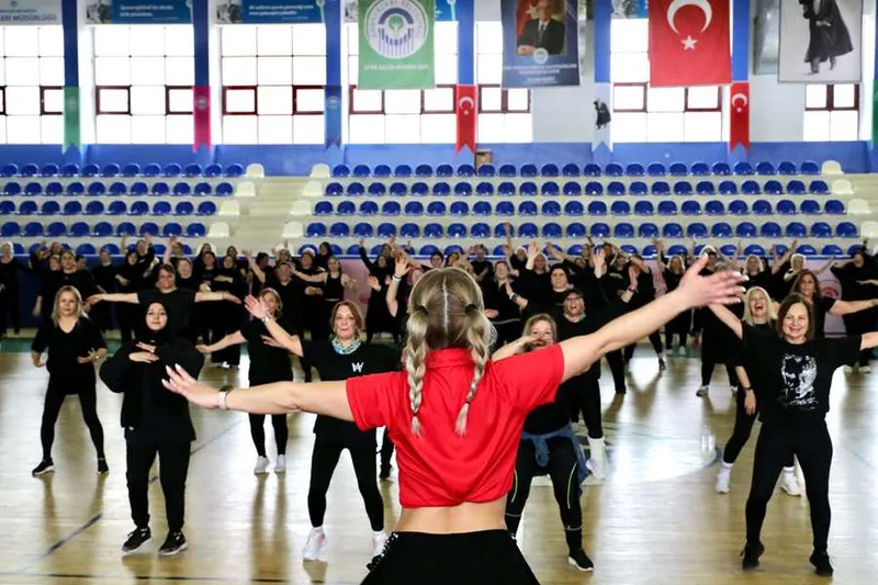 Toplam 250 kursiyerin yer aldığı etkinlikte kadınlar, dans eğitmenleri eşliğinde birbirinden renkli performanslara imza attı. Program kapsamında doğaçlama dans, aerobik, 90'lar dansları ve zumba gösterileri gerçekleştirildi. Katılımcılar hem spor yapmanın hem de birlikte üretmenin keyfini yaşarken, etkinlik coşkulu anlara sahne oldu.