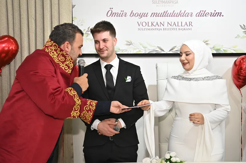 Süleymanpaşa Belediye Başkanı Volkan Nallar yaptığı açıklamada, "Sevginin, sadakatin ve umudun başlangıcına şahitlik ettik. Yeni evlenen çiftlerimize sağlık, huzur ve bitmek bilmeyen bir sevgi diliyorum. Süleymanpaşa Belediyesi olarak vatandaşlarımızın yanında olmaya devam edeceğiz" ifadelerini kullandı.