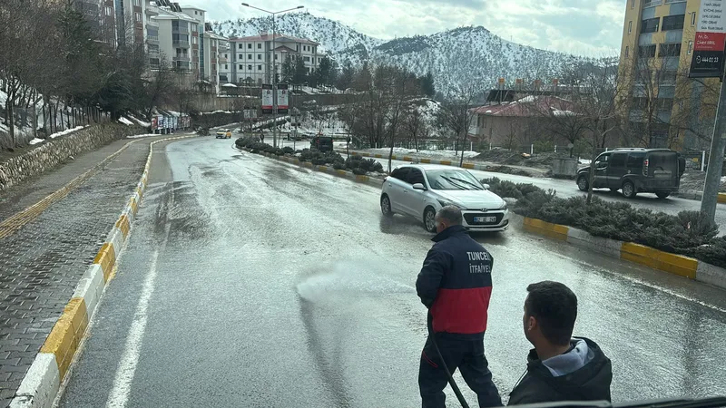 Kar yağışının ardından başlayan erime ve yağmurlar, yol yüzeylerinde kar, tuz ve sudan oluşan bir çamur tabakası birikmesine neden oldu. Bu tabakayı temizlemek için Tunceli Belediyesi itfaiye ve temizlik ekipleri eş zamanlı bir çalışma başlattı.