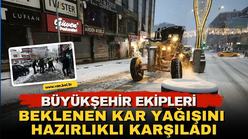 Van Büyükşehir Belediyesi, Afet Koordinasyon Merkezi (AKOM) tarafından yapılan yüksek şiddetli kar yağışı uyarısının ardından gece saatlerinden itibaren teyakkuza geçti. Uyarıların ardından başlayan yoğun kar yağışı, kent genelinde etkisini göstermeye başladı.