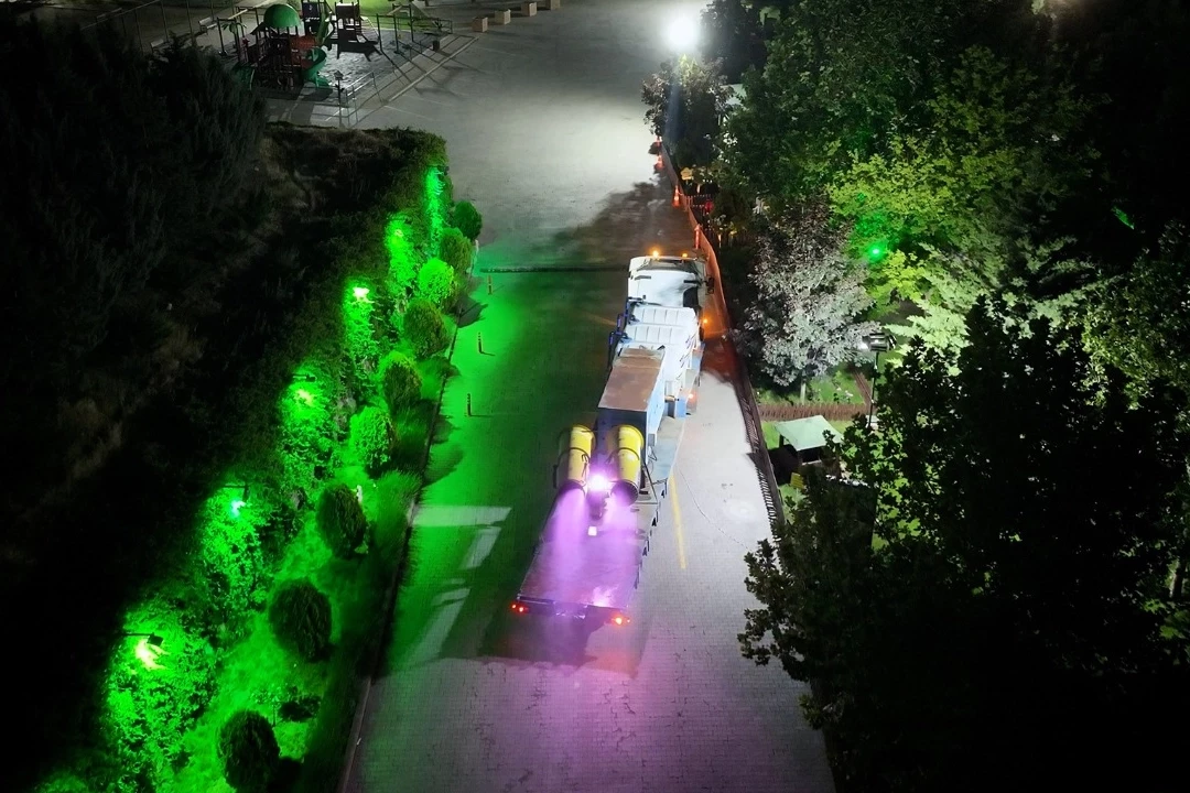 ANKARA (İGFA) - Ekipler 51 mahallenin tamamında gece ve gündüz ilaçlama çalışmaları yürütürken çöp konteynerleri de önce yıkanarak dezenfekte ediliyor ardından haşere üremesini önlemek için özel ilaçlama işlemi gerçekleştiriyor. Parklar, bahçeler, yeşil alanlar, cadde, sokaklar ve çöp konteynerleri belli program dahilinde düzenli olarak ilaçlanıyor.