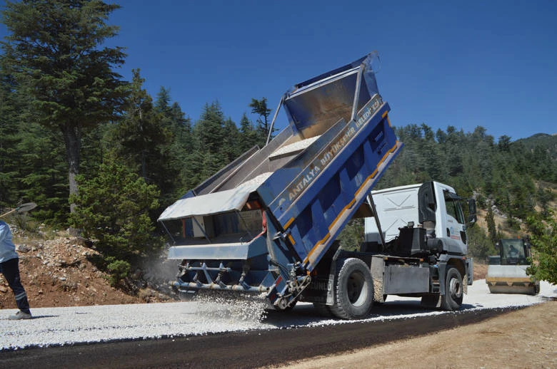 Antalya Büyükşehir Belediyesi, Kaş ilçesine bağlı Çimbir yaylasında sathi asfalt çalışmalarına başladı.