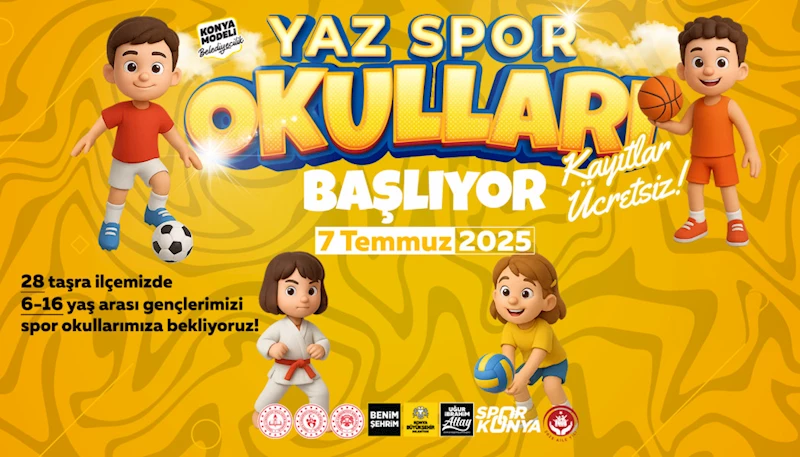 Atletizm, basketbol, futbol, güreş, hentbol, judo, karate, kick boks, masa tenisi, satranç, tekvando, voleybol, yüzme ve jimnastik başta olmak üzere 24 branşta gerçekleşecek Konya Büyükşehir Belediyesi Yaz Spor Okulları’na kayıtlar 6 Temmuz’a kadar sürecek.
