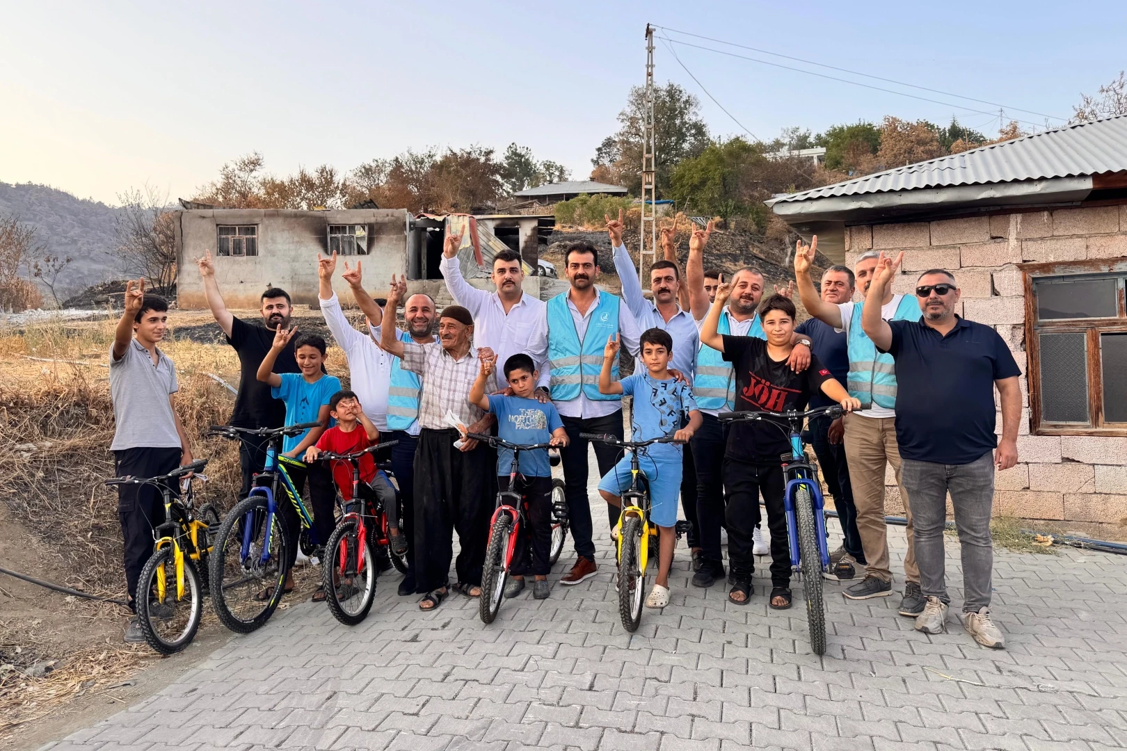 Tural ŞAHBAZLI / KAHRAMANMARAŞ (İGFA) - Ülkü Ocakları Kahramanmaraş İl Başkanı Ali Rıza Gedemenli ve yönetimi, çocuklara bisikletlerini teslim ederek; çocukların ailelerine MHP Genel Başkanı Devlet Bahçeli’nin ve Ülkü Ocakları Genel Başkanı Ahmet Yiğit Yıldırım’ın 'geçmiş olsun' dileklerini iletti.