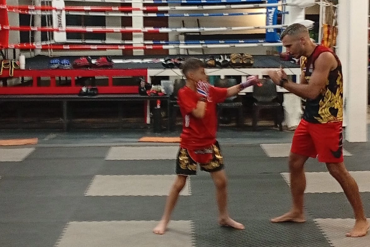 Bostanlıspor’un Tayland'ın Phuket Adası’nda 1 aylık kamp çalışmasına giden 10 yaşındaki muay thai sporcusu Mert Uyanıker, ringe çıktı ve Taylandlı rakibiyle berabere kaldı.