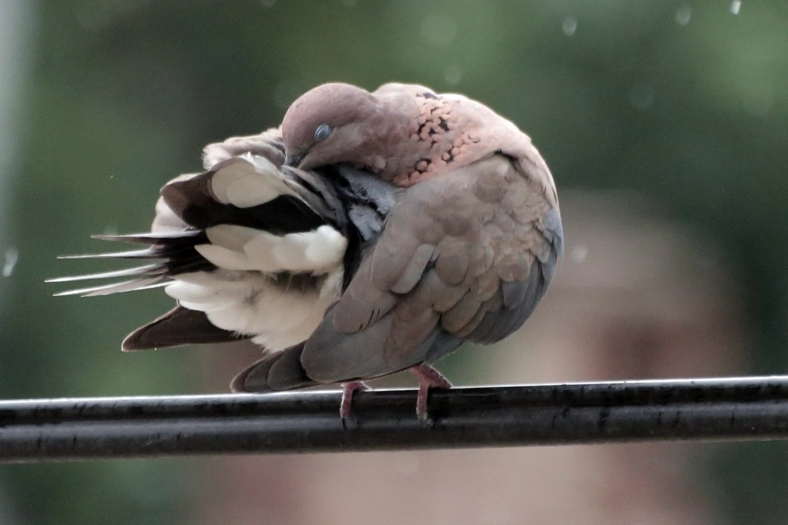 Elektrik tellerine konan gugukçuklar, serin havayla birlikte gelen yağmurun keyfini çıkardı.