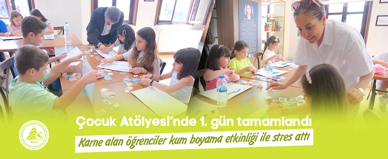 Hisar Tepesi girişinde yer alan Bolu Belediyesi Neyzen Tevfik Kültür Merkezi’nde bir hafta boyunca devam edecek atölyenin ilk gününde kum boyama etkinliği gerçekleştirildi. Cuma günü karne sevinci yaşayan 7–10 yaş grubu çocuklar, etkinliğe yoğun ilgi gösterdi. Yaklaşık 30 çocuk, görevliler eşliğinde kum boyaması yaparak keyifli vakit geçirdi.