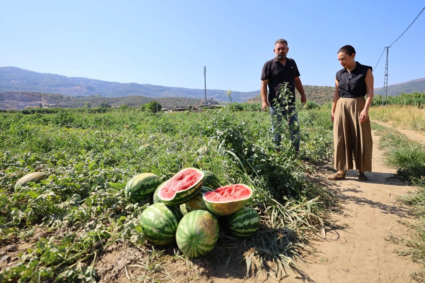 İzmir'de Efes Selçuklu karpuz üreticisi Hakan Kahya, artan maliyetler ve düşük fiyatlar nedeniyle ürününü tarlada bırakırken, Belediye Başkanı Filiz Ceritoğlu Sengel destekle israfı önledi.