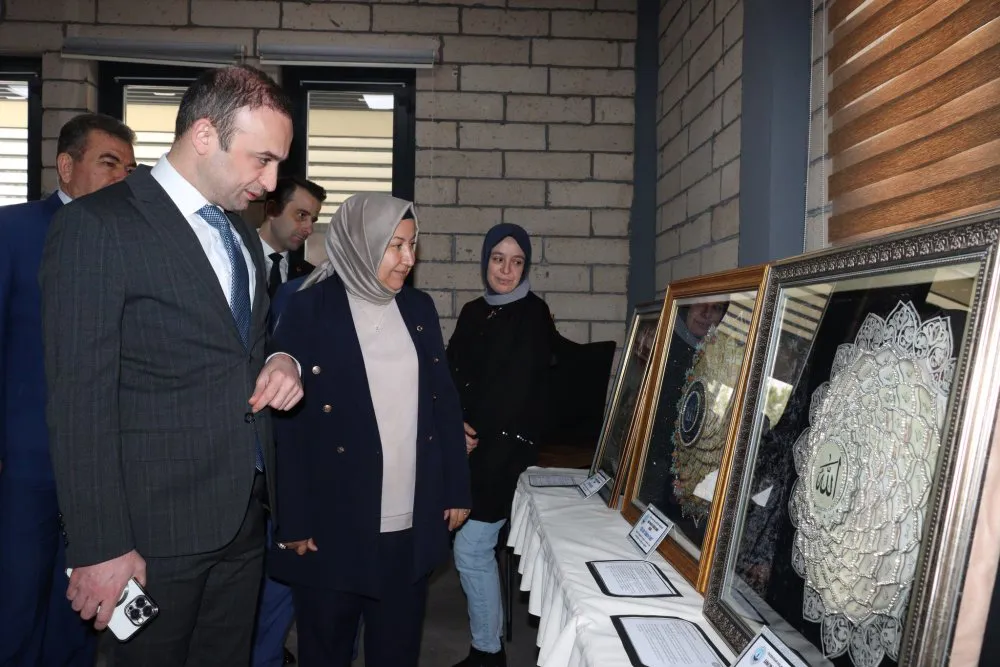 Kaymakam Akdağolu ve Başkan Kılınçarslan, açılış kurdelesini birlikte kestikten sonra sergiyi gezdi. Sergide, Halk Eğitim Merkezi kursiyerlerinin rölyef, hat, tezhip ve ebru sanatlarıyla hazırladığı eserler yer alıyor.