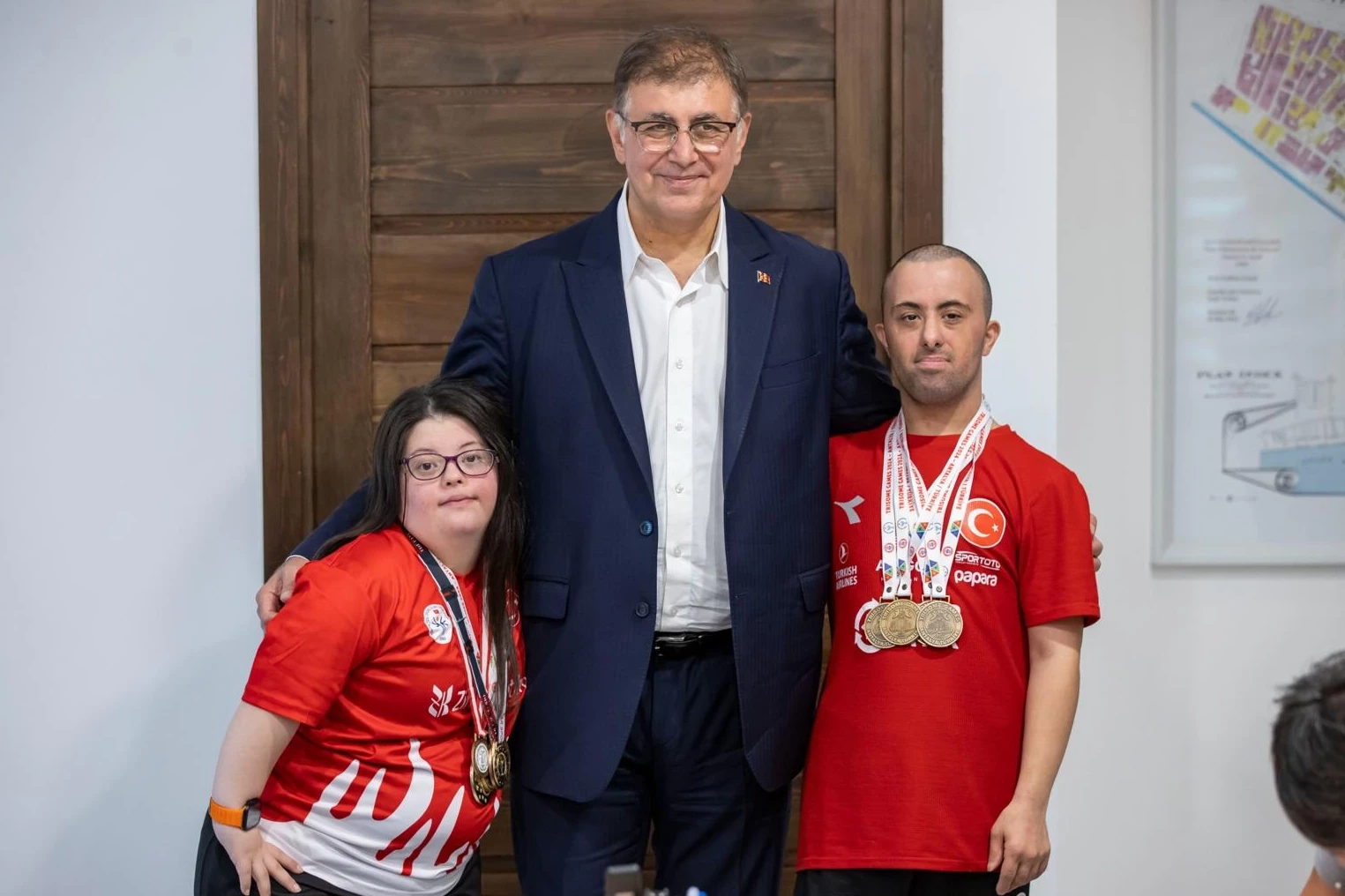Ziyarete, Manş Denizi’ni geçen otizmli ultra maraton yüzücüsü Tuna Tunca, Cook Boğazı’nı en hızlı geçen Türk yüzücü Emre Erdoğan, Down Sendromlular Avrupa Cimnastik Şampiyonası’nda altın madalya kazanan Alper Öztürk ve aynı şampiyonada derece elde eden Selin Durgut katıldı. Görüşmede, Genel Sekreter Yardımcısı Prof. Dr. Pınar Okyay, Spor Kulübü Başkanı Ertuğrul Tugay, Başkan Vekili Tuğçe Gülcüler, Gençlik ve Spor Hizmetleri Dairesi Başkanı Anıl Kaçar ve antrenörler de yer aldı.