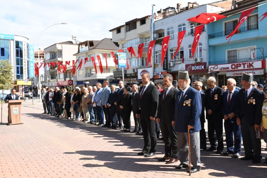 İznik’te 19 Eylül ‘Gaziler Günü’ kapsamında düzenlenen tören saat 11.00’da Atatürk Anıtı’na çelenk sunumu , Saygı duruşu ile İstiklal Marşı’nın okunmasıyla başladı.