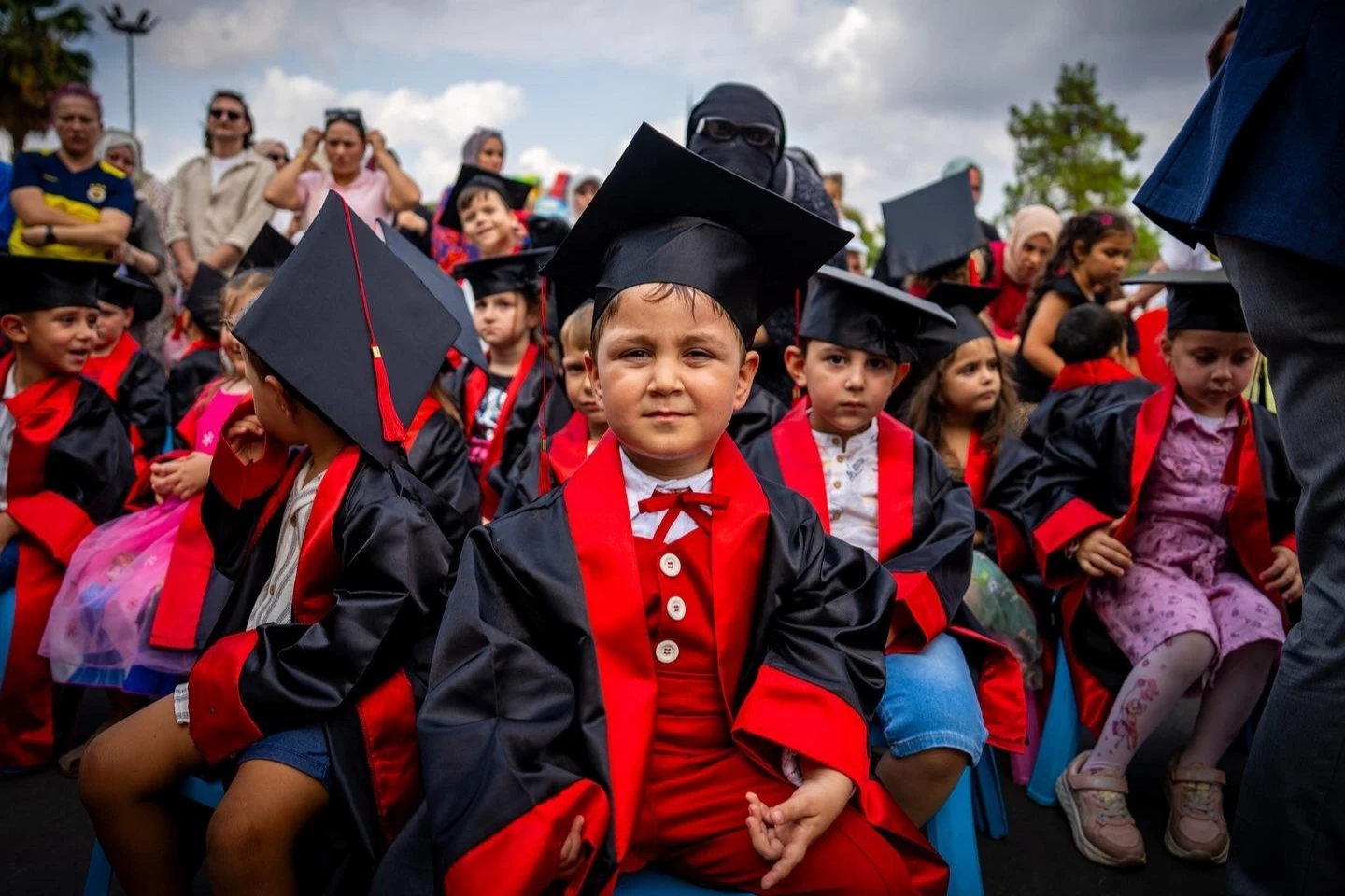 Çocuklar, mezuniyet töreni öncesinde aileleriyle birlikte etkinlik alanına gelerek, gün boyu çeşitli oyunlar ve atölye çalışmalarıyla keyifli vakit geçirdi.