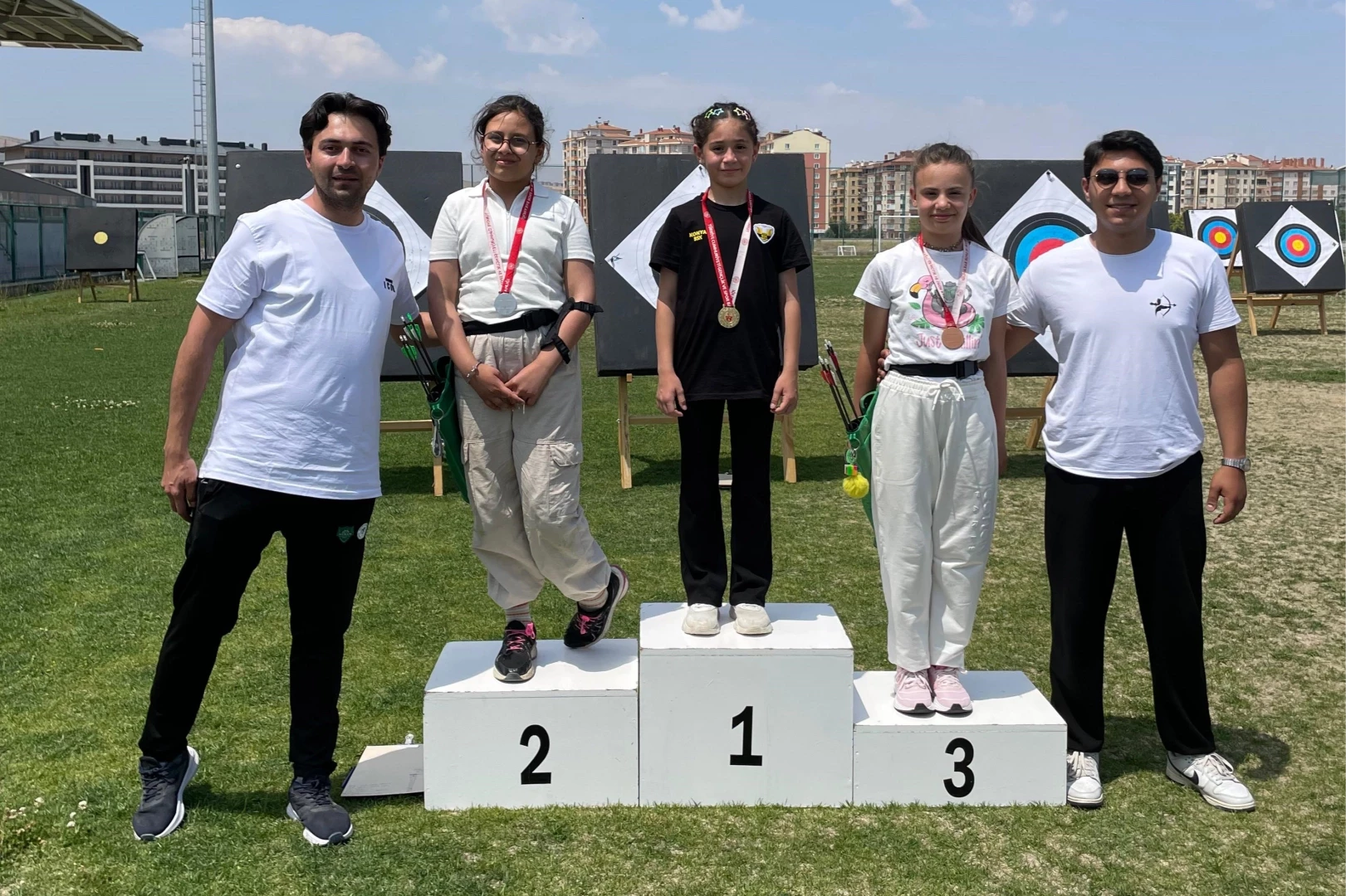 KONYA (İGFA) - Türkiye Okçuluk Federasyonu (TOF) Konya İl Temsilciliği tarafından düzenlenen Konya Bölge Şampiyonası’nda yarışan Meramlı genç sporcular, farklı yaş kategorilerinde önemli dereceler elde ederek Meram’ın gururu oldular.