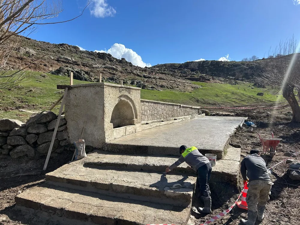 Manastır Çeşmesi’nde hava şartlarının düzelmesiyle birlikte restorasyon ve yenileme çalışmaları yeniden başladı; beton, küpeşte ve çevre düzenlemeleri titizlikle sürdürülüyor.