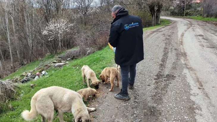 Çemişgezek Belediyesi, Cebe Köyü yol ayrımında mama desteği sağladı