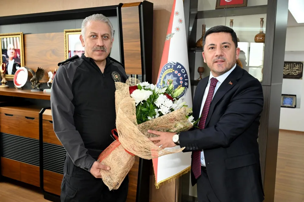 Nevşehir Belediye Başkanı Rasim Arı, Türk Polis Teşkilatının 181. kuruluş yıldönümü ve Polis Haftası dolayısıyla Nevşehir İl Emniyet Müdürü Serkan Karaman'ı ziyaret etti.