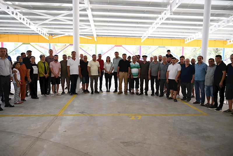 Başkan Topaloğlu'nun daha önce Kemer halkının ve pazar esnafının kullanımına kazandırdığı Kuzdere, Arslanbucak, Çamyuva ve Göynük kapalı pazar yerlerinden sonra yapımı tamamlanan Tekirova kapalı pazar yerinde de kuralar çekildi.